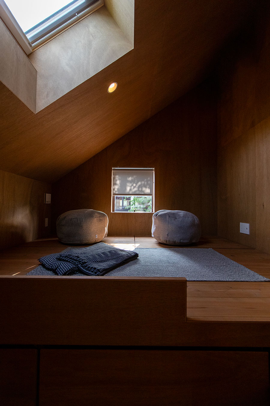 HUIZEN HUISJE 3LDKプランの1つ。元来、宿泊施設として計画されたプラン。性質上必要であった広い玄関土間収納は使い易さの観点からそのまま踏襲された。1階部分は4つのゾーニング(スクリーンルーム、リビング、ダイニング、キッチン)に分けられており、それぞれ全く異なる素材感、窓のスケール、そして天井高を持つ。各エリア、各アクティビティが、互いに存在感を主張し合いながらも、適度な間合いを取り、共存している。いつまでたっても飽きのこない、毎日を満喫させてくれる住まい。※規格住宅ではありません